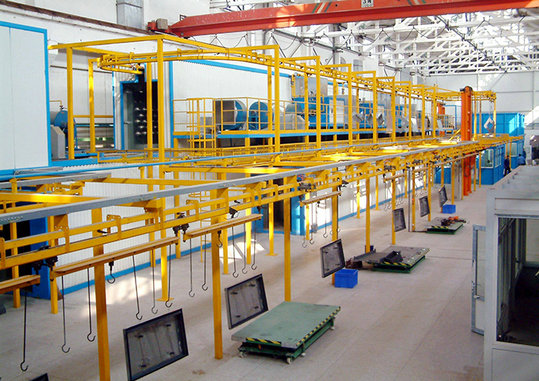 涂裝流水線是流水線市場上比較流行了一款產品,它適用于工件表面的噴漆、噴塑處理,多用于單件或小批量工件的涂裝作業,配合懸掛輸送機、電軌小車、地面輸送機等運送機械形成運輸作業。