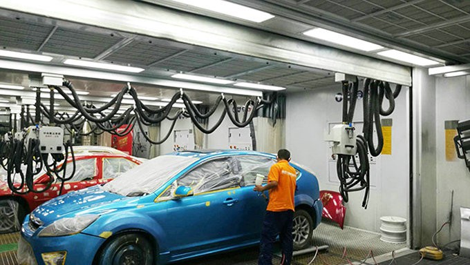 1、用途:用于工件整車或局部的打磨、噴底漆、底漆烘干、噴面漆及面漆烘干的鈑噴流水線作業。使工件表面形成致密的耐蝕膜層,并具有良好的外觀質量,以提高產品的防腐性能和裝飾性能。
